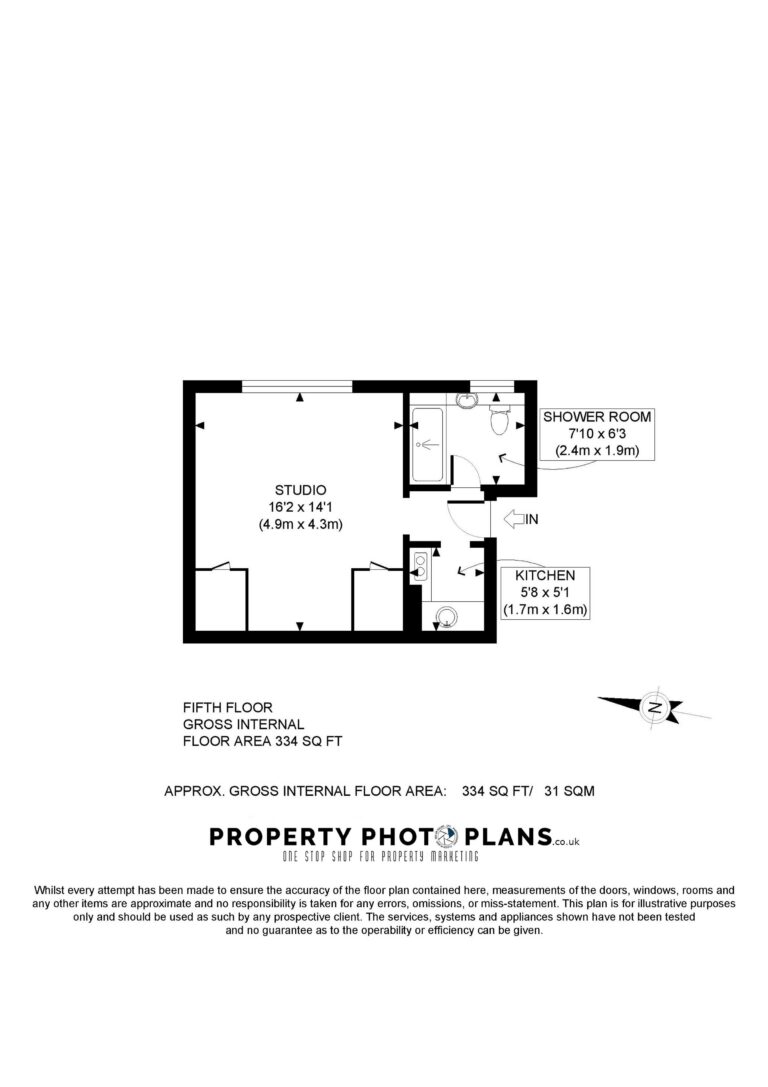 The apartment comprises; studio room, separate kitchen with integrated appliances and bathroom.